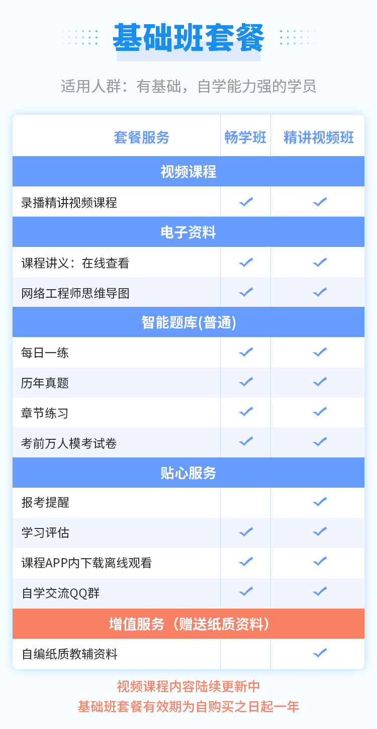 包含上期錄播精講視頻課程、智能題庫隨時(shí)刷題(普通)、全科考前萬人??荚嚲?、電子資料輔助學(xué)習(xí)、電腦+移動(dòng)端便捷學(xué)習(xí)。